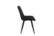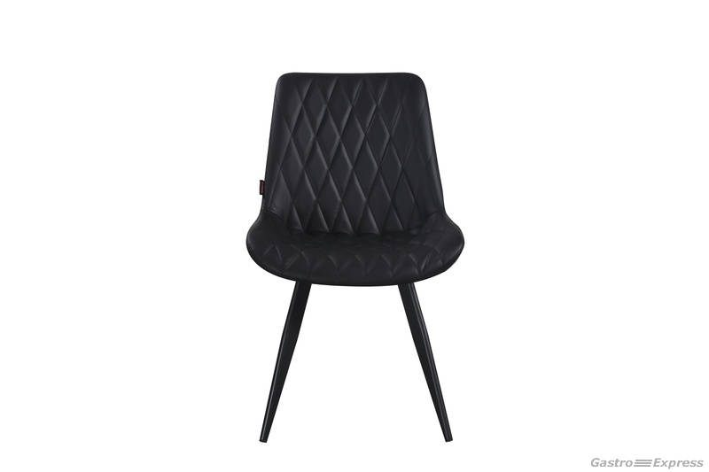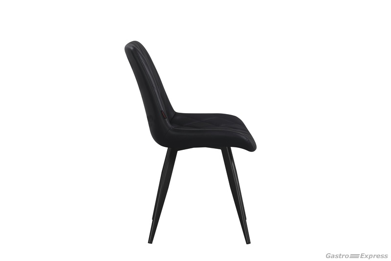Stylischer, moderner Restaurantstuhl Francesca mit schwarzem Kunstleder und schwarz lackiertem Metallgestell.