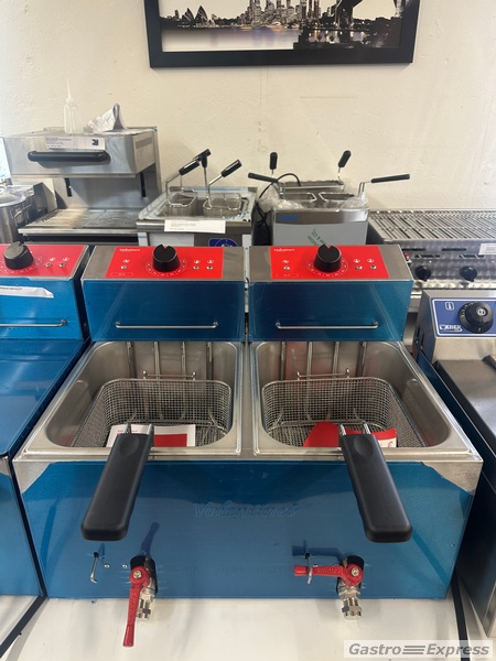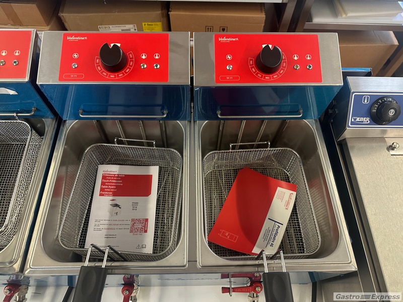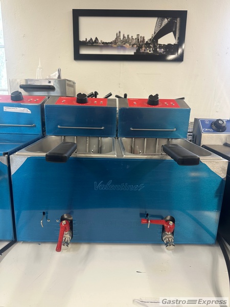 Zu verkaufen: professionelle Tischfritteuse Valentine TF77 mit zwei Becken 7 Liter. Hochwertiges Profigerät für Restaurants, Imbisse, Take-Away und Catering.