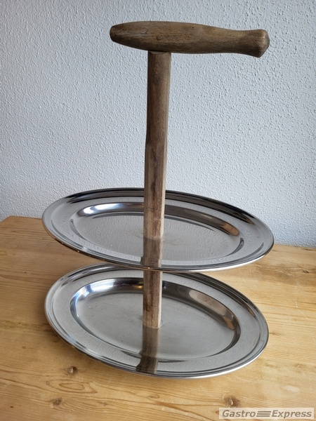 Etagere aus alten Serviceplatten und antikem Holzstock, Unikat