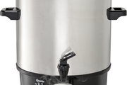 Material: Gehäuse und Deckel aus Edelstahl, Sockel, Griffe und Ablasshahn aus Kunststoff