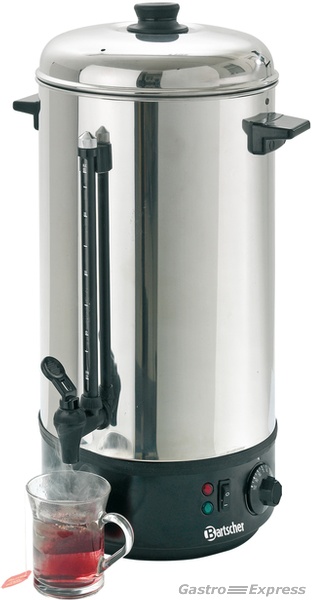Material: Gehäuse und Deckel aus Edelstahl, Sockel, Griffe und Ablasshahn aus Kunststoff