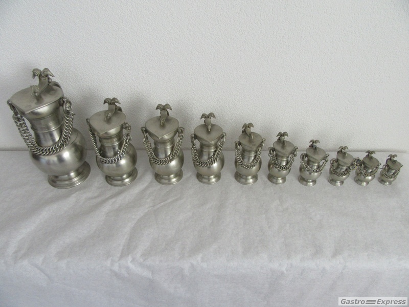 10 Stk. originale Walliser Zinnkannen, mit Kette, schwere Ausführung