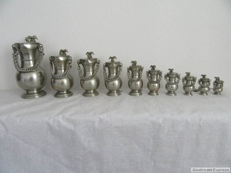 10 Stk. originale Walliser Zinnkannen, mit Kette, schwere Ausführung