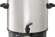 Material: Gehäuse und Deckel aus Edelstahl, Sockel, Griffe und Ablasshahn aus Kunststoff