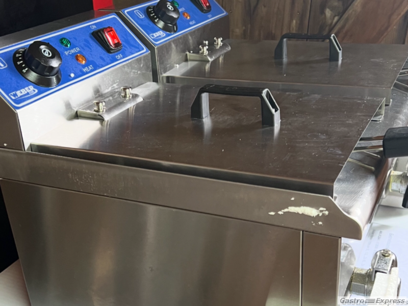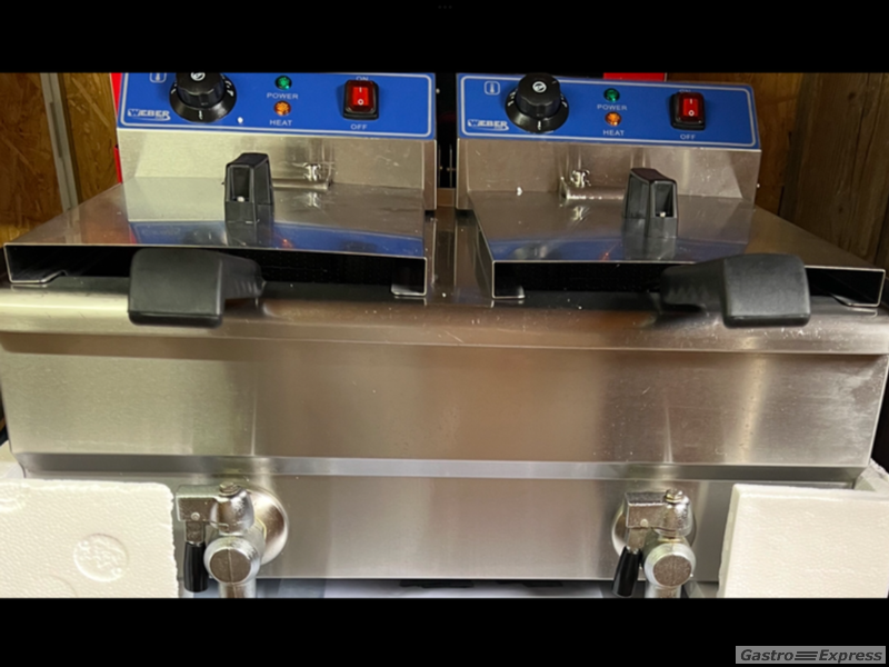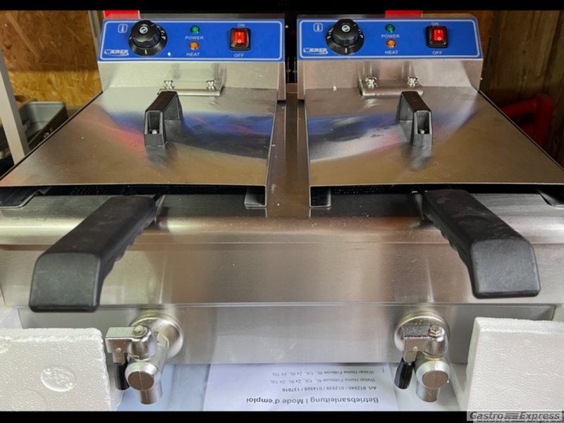 Leistungsstarke Doppelfriteuse mit Oelablass 2 x 10 lt. in absolut neuwertigem
