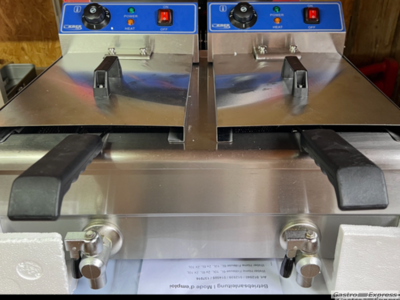 Leistungsstarke Doppelfriteuse mit Oelablass 2 x 10 lt. in absolut neuwertigem