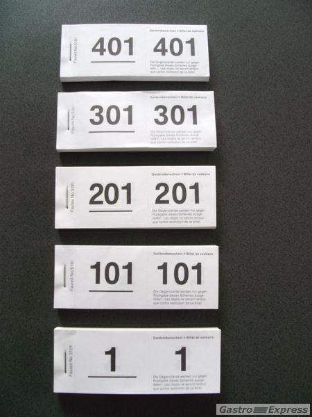 500 Stk. Garderobenummern/Billette, Marke Favorit