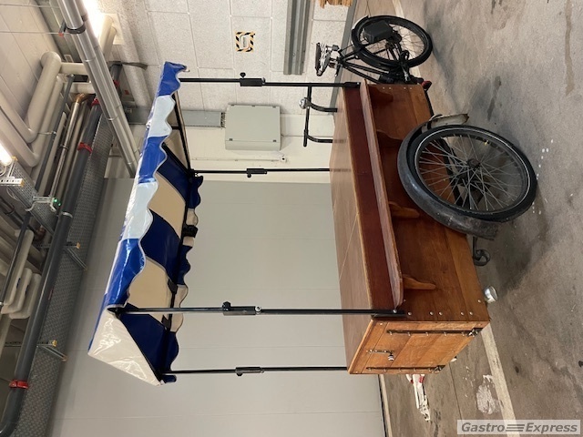 Alter Backfisch von ca 1940 zum Marktfahrrad umgebaut. Fährt tip top, Batterie betrieben (muss revidiert werden wegen Wackelkontakt, neue Räder montiert diesen Frühling, neuer Klettverschluss an Dach muss gemacht werden.