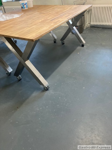 Gut im Schuss, einfach zu reinigen, sehr flexibel da Rollen angebracht sind auf stabilem Gestell. Ideal zum Teig vorberieten oder für Backkurse.