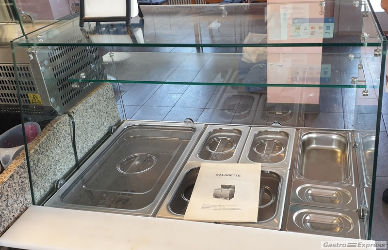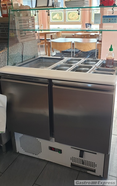 Neuwertige Saladette mit Glasaufsatz und Gastrobehältern. Neu gekauft 10/2024. Muss abgeholt werden.