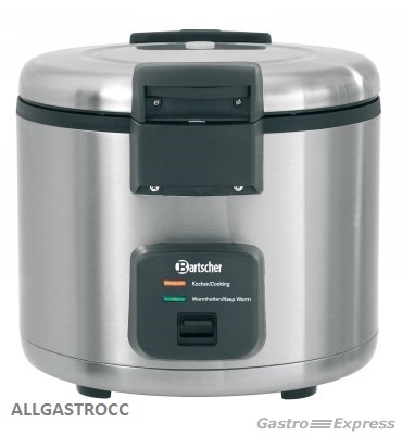 Der Gastro Reiskocher von Bartscher ist günstig und hat eine Warmhaltefunktion. Der professionelle Reiskocher mit einer kompletten Aussenhaut aus rostfreiem Stahl ist bei der breiten Kundschaft äusserst beliebt. Der Innentopf ist so beschichtet, dass kein ankleben von Reis vorkommen kann. Das Gerät zu reinigen ist dank des herausnehmbaren Innentopfs kein Problem.