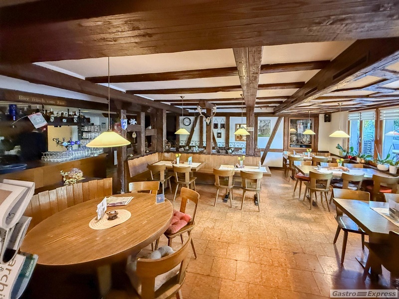 Das Restaurent mit 56 Plätzen kann durchgängig mit dem Saal um mindestens 36 Plätze erweitert werden !