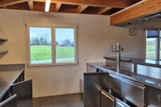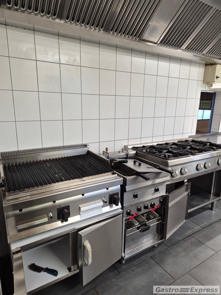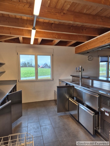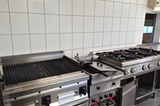 Das Restaurant verfügt über eine voll ausgestattete Gastroküche mit Lavastein Grill, Doppelfritteuse, Combisteamer, Saladette, 6-flammiger Gasherd, etc.