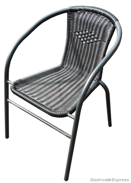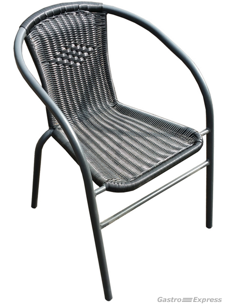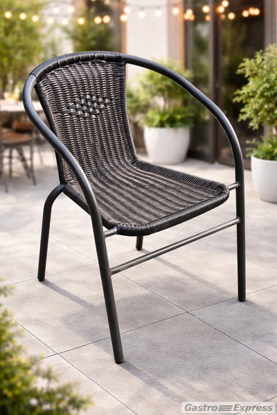 Zu verkaufen: stilvoller Rattan Gartenstuhl in Schwarz mit anthrazitfarbenem Gestell. Zeitloses Design – ideal für Restaurant, Café, Terrasse oder Garten.