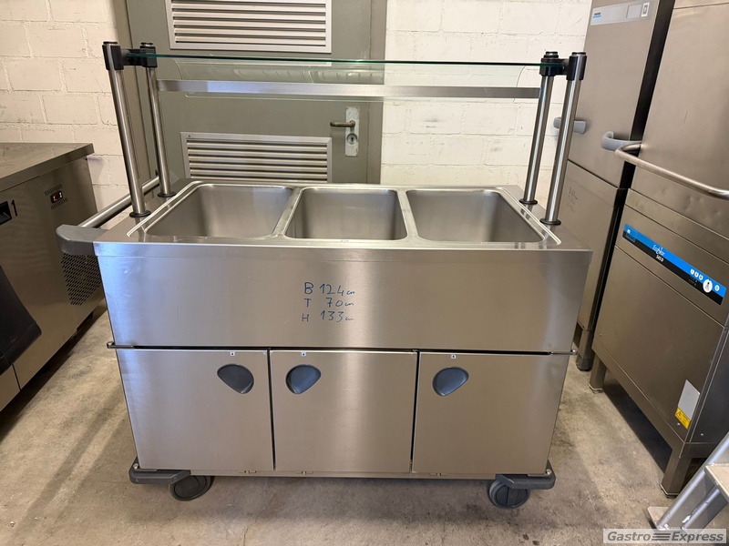 Wärmebuffet in einem guten Zustand. Wurde wenig gebraucht. GN-Einheit 1/1 . Heizt auch im unteren Bereich. Funktioniert einwandfrei.