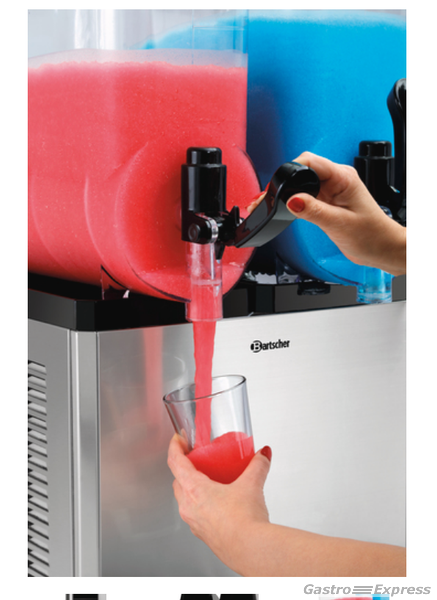 Die frostig kalten Getränke finden in Freizeitparks und Schwimmbädern sowie in Bars oder Diskotheken ganzjährig ihre Abnehmer. Die separat schaltbare Beleuchtung der beiden 12 Liter-Behälter setzt das farbenfrohe Slush-Eis / Granita erst so richtig in Szene.