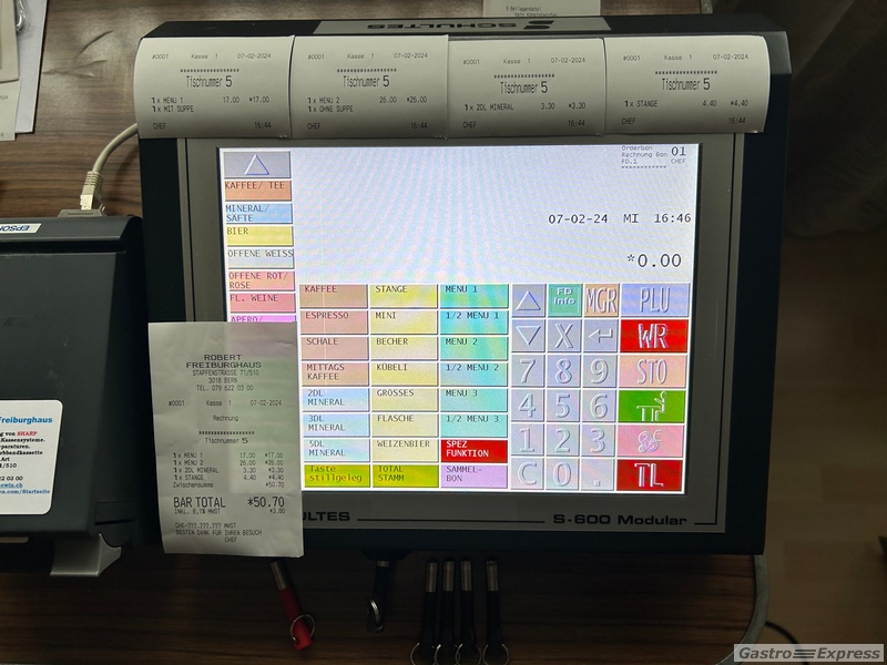 Schultes S-600Modular mit Epson Rechnungsdrucker TM-T70, zu verkaufen. Geräte in TOP Zustand. Wurde von mir als Techniker und Verkäufer immer gepflegt. Preis CHF 900.-- Inklusive 200 PLU programmiert.Jedes weitere PLU CHF 1.00 pro PLU. Die Schulung ist auch in diesem Verkaufspreis inbegriffen. Passende Rollen können auch erworben werden. Thermopapierrollen Bisphenolfrei 80mm x 70mmØ 70gm² CHF 1.90 pro Rolle. Nebst diesem Angebot, verkaufe oder programmiere ich allerlei SHARP Registrierkassenmodelle, z.B. XE-A Modelle 113,137,147,201,202,212,203,213,207,217,307.ER-A Modelle 410,420,411 und 421. Manchmal braucht es nur ein gewisses Fachwissen um solche Modelle wieder in Betrieb und auf Vordermann bringen zu können. Selbstverständlich habe ich auch Occasion Kassen im Angebot von diesen voraus erwähnten Kassenmodelle und ebenfalls passende Thermopapierrollen.