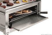 Die platzsparende Grill-Salamander-Kombination verfügt über eine leistungsstarke Griddleplatte mit 2 getrennt schaltbaren Heizzonen. Die Wärmezufuhr des Salamanders lässt sich perfekt mit dem höhenverstellbaren Rost und der stufenlos einstellbaren Temperatur regulieren. Mit dem digitalen Timer sind Grill- und Gratiniervorgänge bestens unter Kontrolle – auch in Stosszeiten.
