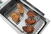 Bratsaft und Fett tropfen in Wasserschale und können somit nicht brennen und Sie haben eine geringere Rauchentwicklung.