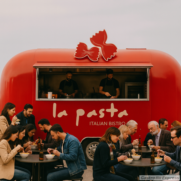 Fixfertige Pasta-Foodtrailer-Konzept mit Standort