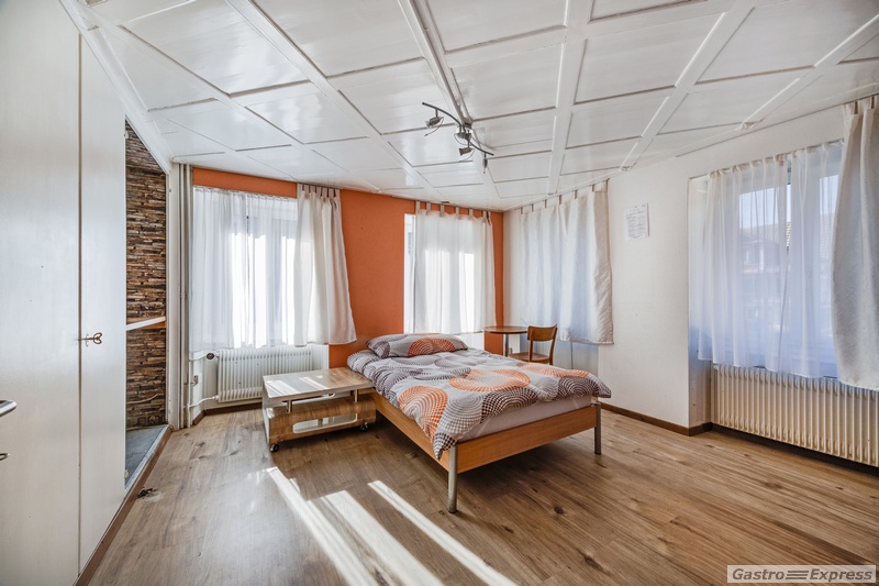 Die Liegenschaft verfügt über mehrere Gasträume, einen grossen Veranstaltungssaal sowie möblierte Gästezimmer. Besonders attraktiv ist die sonnige Gartenterrasse mit rund 80 Sitzplätzen, die den Betrieb in den Sommermonaten ideal ergänzt.