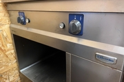 Das Küchengerät ist mobil und hat einen Unterschrank zur Ablage von Kochutensilien,