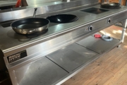 Sehr leistungsstarker, absolut neuwertiger, mobiler Induktionsherd mit professionellem, grossem Wok mit 8 kW sowie professioneller-kräftiger Bratplatte