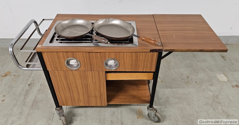 Flambierwagen mit 1 Kochfläche 2 Brenner