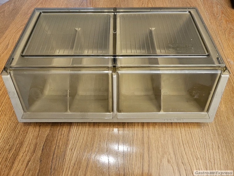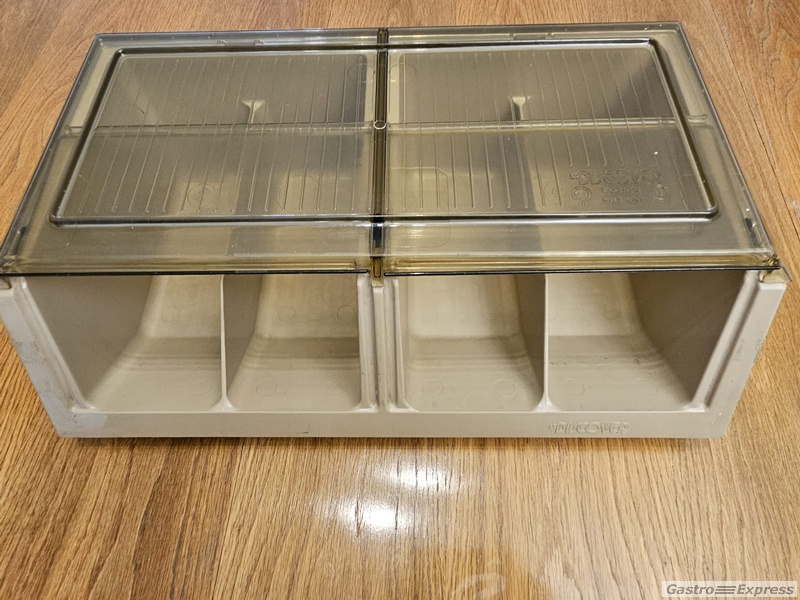 Zu verkaufen ist ein 4-teiliger Besteckkasten aus Kunststoff.