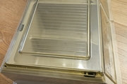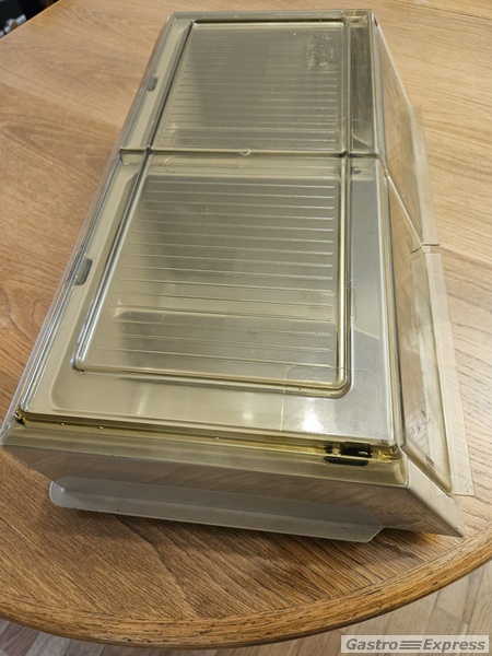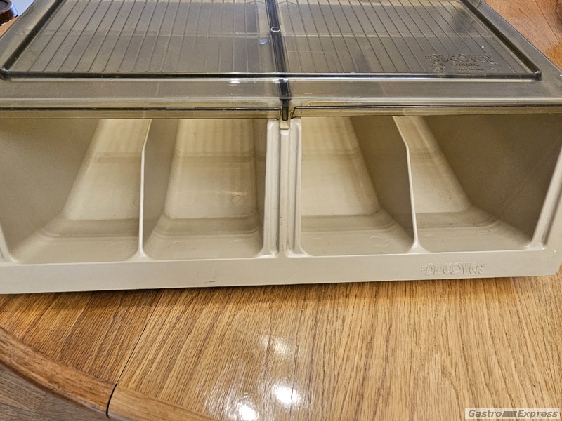 Mit einer Klappe die das Besteck vor Staub und Schmutz schützt.