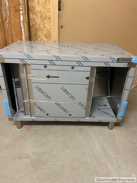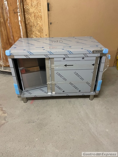Neuwertiger Edelstahltisch mit Schiebetüren