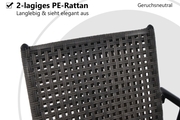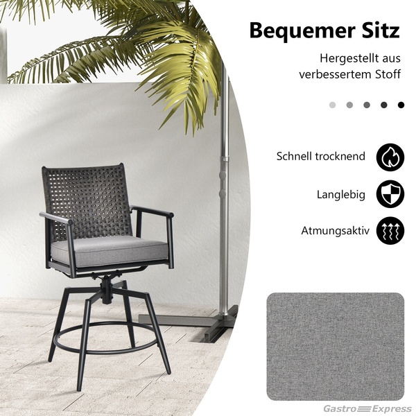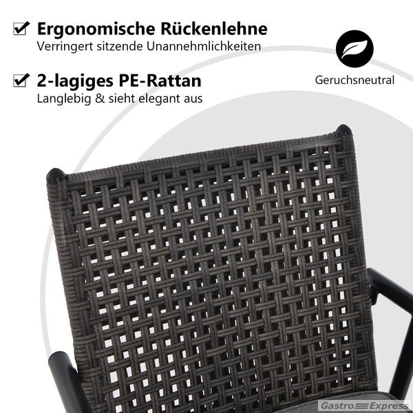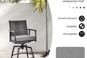 Das Barhocker-Set von 2 verfügt über ergonomische Rückenlehnen, die Ihren Rücken unterstützen und Unannehmlichkeiten reduzieren. Gleichzeitig verfügt es über 2-lagiges PE-Rattan, das nicht nur geruchsfrei und langlebig ist, sondern auch eine elegante Atmosphäre schafft.