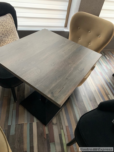 8 robuste Tische, quadratisch 68 x 68 cm, Tischplatte rustikal. Tischgestell eckig, 42 x 42 x 72cm schwarz, quadratisch mit Höhenausgleichsschrauben. Alle Tische sind in einem TOP Zustand, Tischplatten ohne Kratzer. Tischgestelle haben an manchen Stellen / Ecken kleine Roststellen.