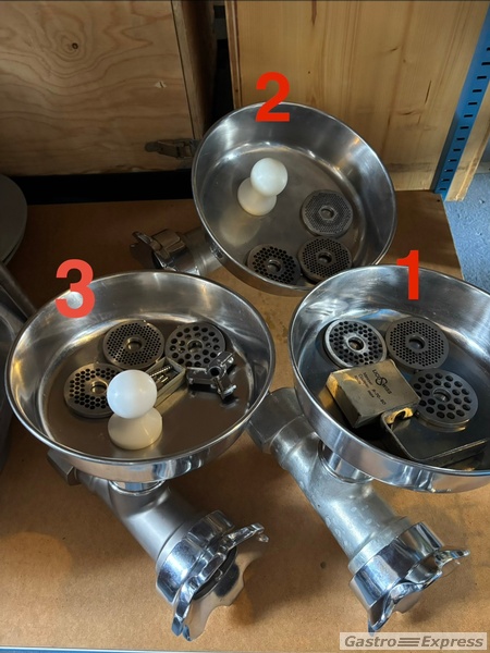 Zum Verkauf stehen 3 Fleischwölfe passend zu Lips Piccolo Universalmaschinen.