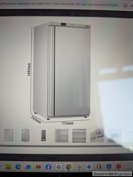 Lagerkühlschrank Edelstahl ECO - 600 Liter - mit 1 Tür - Innenseite der Tür aus Kunststoff - Neu = 634 CHF (ohne MWST). Gekauft in Dezember und nie gebraucht.