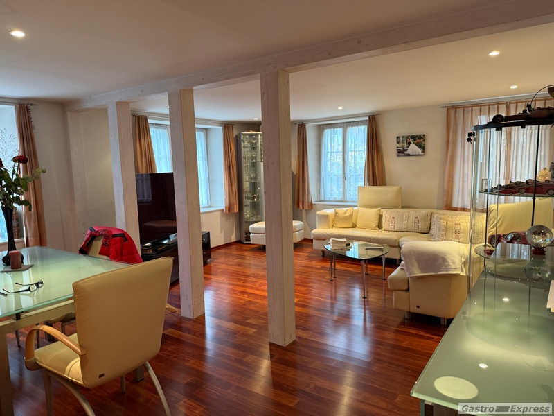Zum Objekt gehören zusätzlich eine 3.5-Zimmer Wirtewohnung ohne Küche, ein separates Sitzungszimmer und 4 Gästezimmer mit Etagenbad. Auf dem Vorplatz stehen 12 Parkplätze zur Verfügung, was den Betrieb im Alltag deutlich erleichtert.
