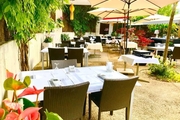 Gepflegtes Speiserestaurant mit Pergola Garten