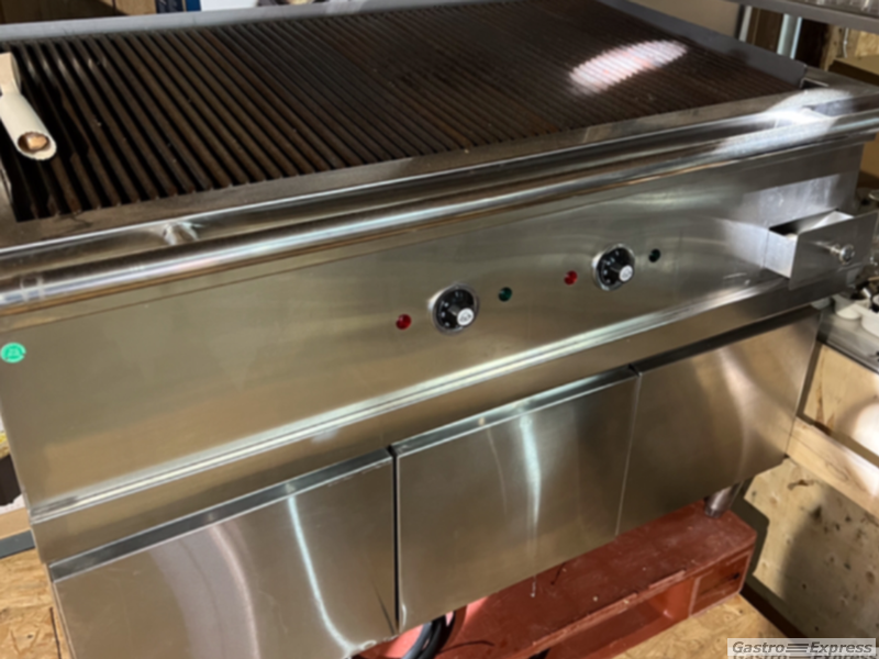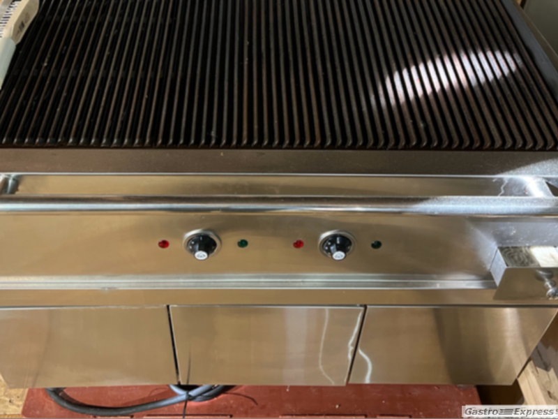 Sehr massiver, leistungsstarker, grossflächiger Lavasteingrill mit 2 unabhängigen Heizzonen à je 7,5 kW Leistung.