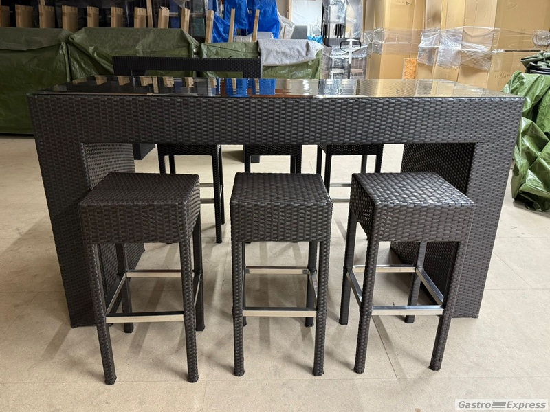 Stehtische Rattanoptik mit Glasplatte 200 x 80 x 107 LxBxH