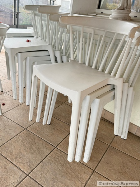 Dieser robuste, weisse Kunststoffstuhl ist perfekt für den Aussenbereich geeignet. Ob im Garten, auf dem Balkon oder der Terrasse ? er ist leicht zu reinigen und wetterfest. Der Stuhl ist gebraucht, aber in gutem Zustand und bietet bequemen Sitzkomfort. Ideal für die kommende Gartensaison! Einfach stapelbar und platzsparend zu verstauen. Ein Muss für jeden Outdoor-Bereich. Greifen Sie jetzt zu!