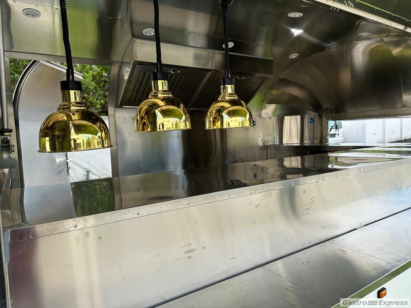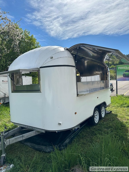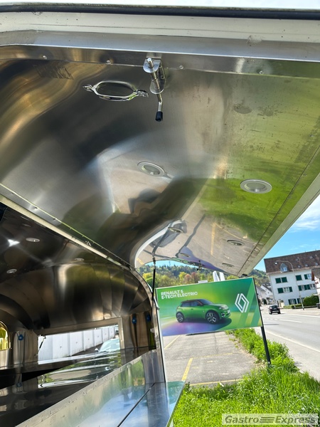 Anhänger Food Erstzulassung 01.25. Der Anhänger wurde niemals benutzt. Von Ihnen ist der Food Truck verkleidet mit chromstal. Hat eine Ventilation über den Geräten, welche sich bereits drinnen befinden: eine Doppel Fritteuse, eine Grillplatte, warmhalte Wanne für Pommes Frites und Back Gut.
