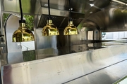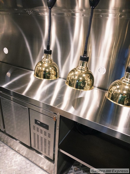Alle Geräte laufen auf Gas, außer Kühlzelle und Warmhaltebehälter der Warmwasserboiler. Das Labo hat eigene Warmwasserversorgung.